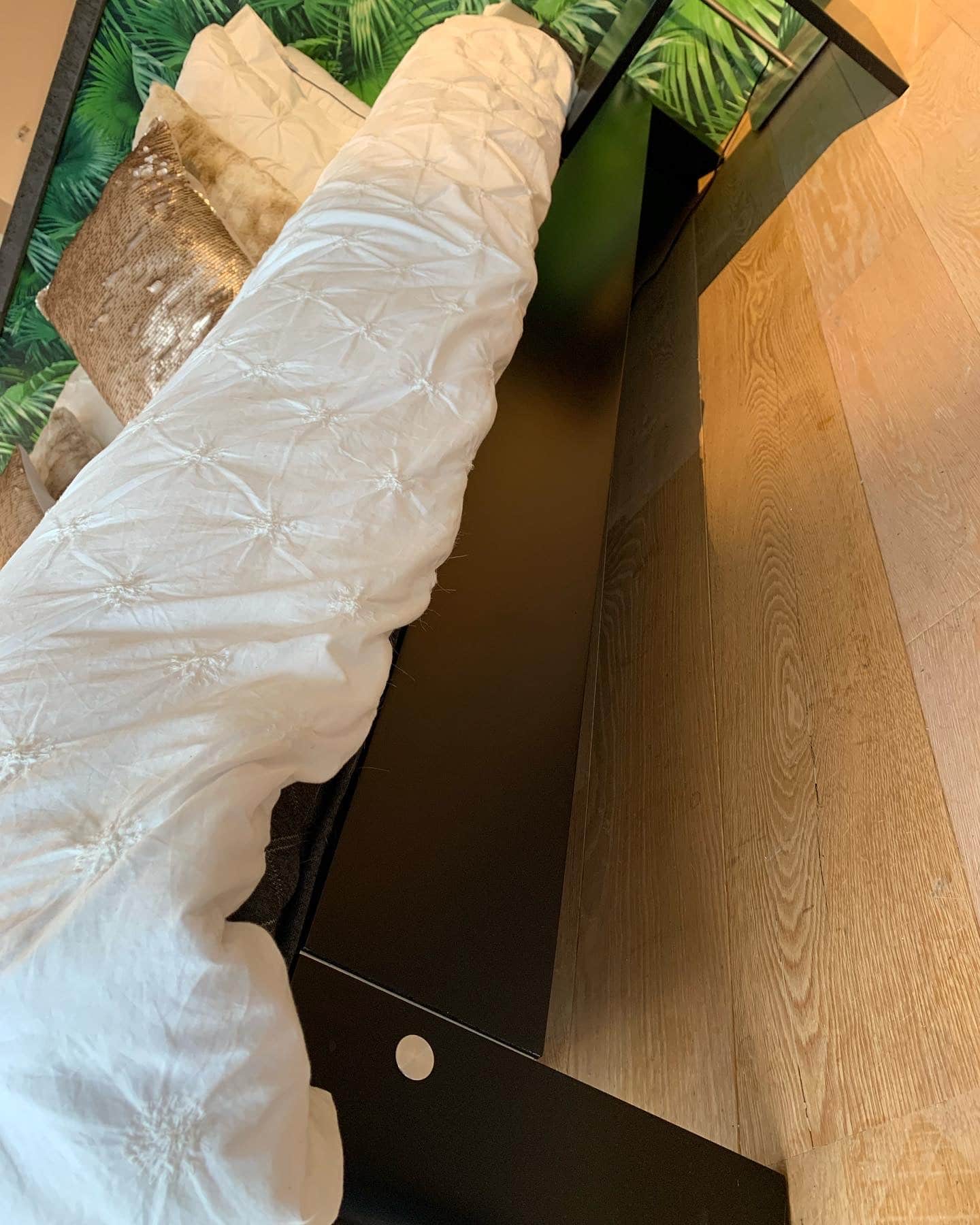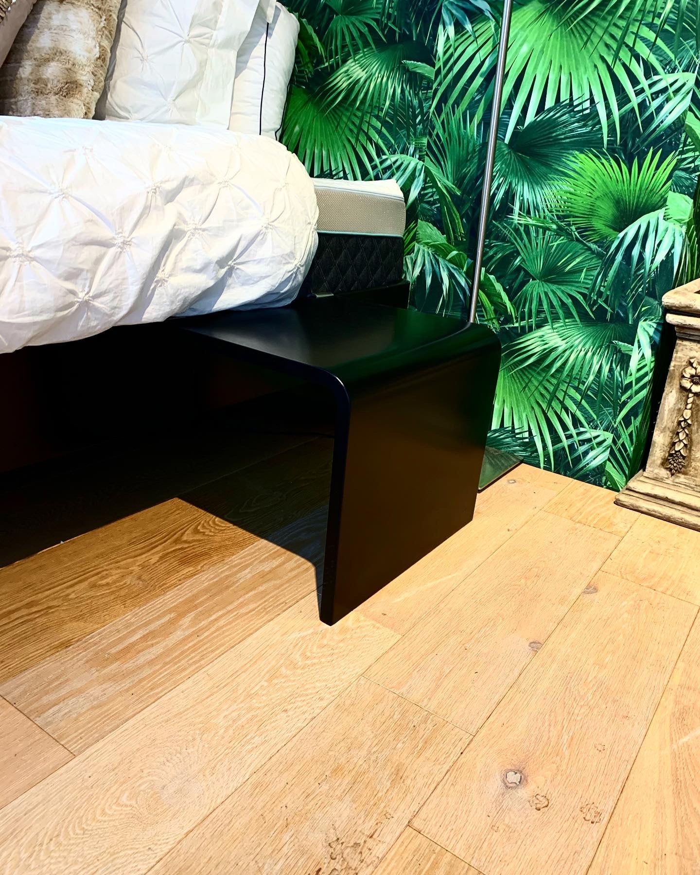 Deze showroom set is tevens voorzien van twee Auping Auronde aanhang tafels. Deze bijpassende Auping nachtkastjes zijn onderdeel van het bed en kunnen worden geplaatst op alle punten van de bed ombouw. De aanhang tafels zijn ideaal voor het plaatsen van een bedlamp, wekker etc. Een heerlijke complete Auronde bed ombouw!