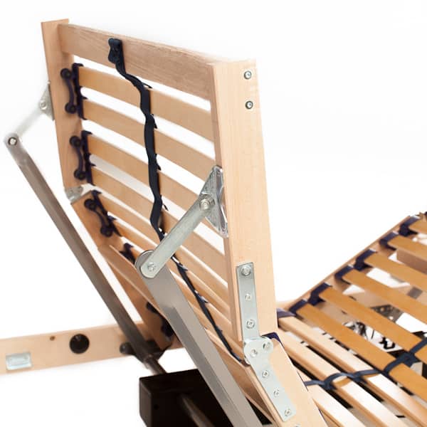 Geniet van uitstekend ligcomfort, excellente rugondersteuning en een prettig zachte schouder-bekkenzone met zeer goede veereigenschappen. Materiaal: meervoudig gefineerd houtlaminaat, robuust en duurzaam. Latten: 28 verende houten latten in High Quality Construction, opgehangen in flexibele, los opliggende duokappen.