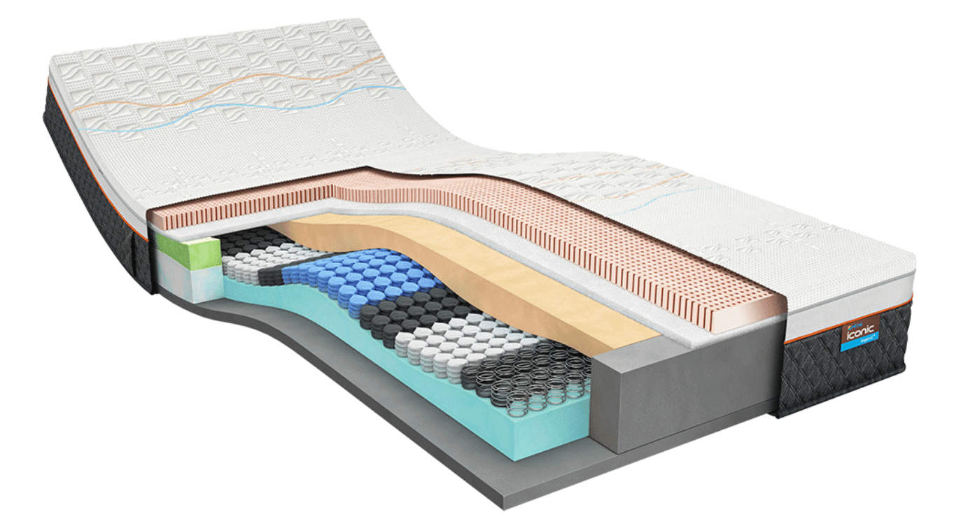 De M line Iconic Hero bestaat uit drie verschillende lagen, waarbij de Contour Support laag voorzien is van een geprofileerde tussenzone. Hierdoor wordt de mate van ondersteuning aangepast aan de ondersteuning die het lichaam nodig heeft, dat maakt het matras geschikt voor iedereen en elk type lichaamsbouw. Het matras heeft een hoogte van 26 cm. De Iconic Hero 5 beschikt over een zachtere toplaag dan de Iconic Hero 6.