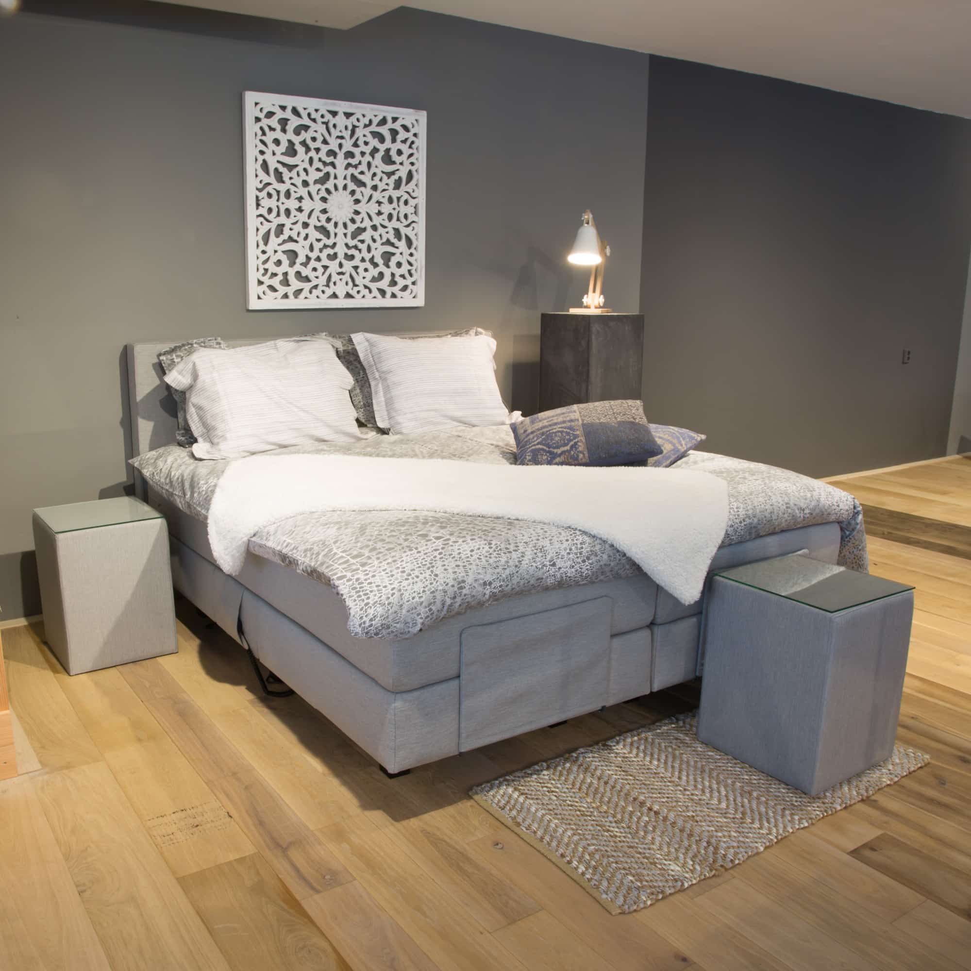 • Twee extra dikke gestoffeerde pocketgeveerde boxen (30 cm hoog)